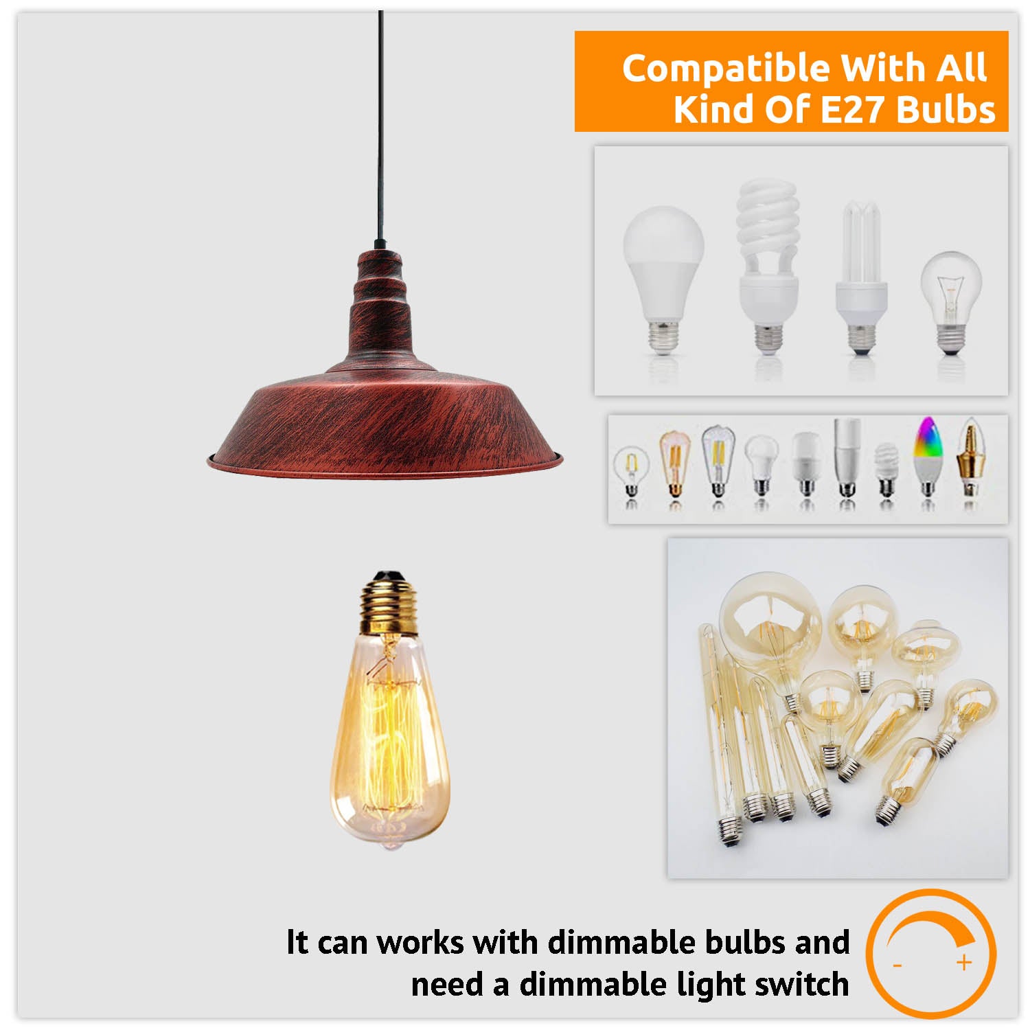 - Designed with E27 lamp base, filament retro bulbs will be a good choice to bring out the character of this fitting.