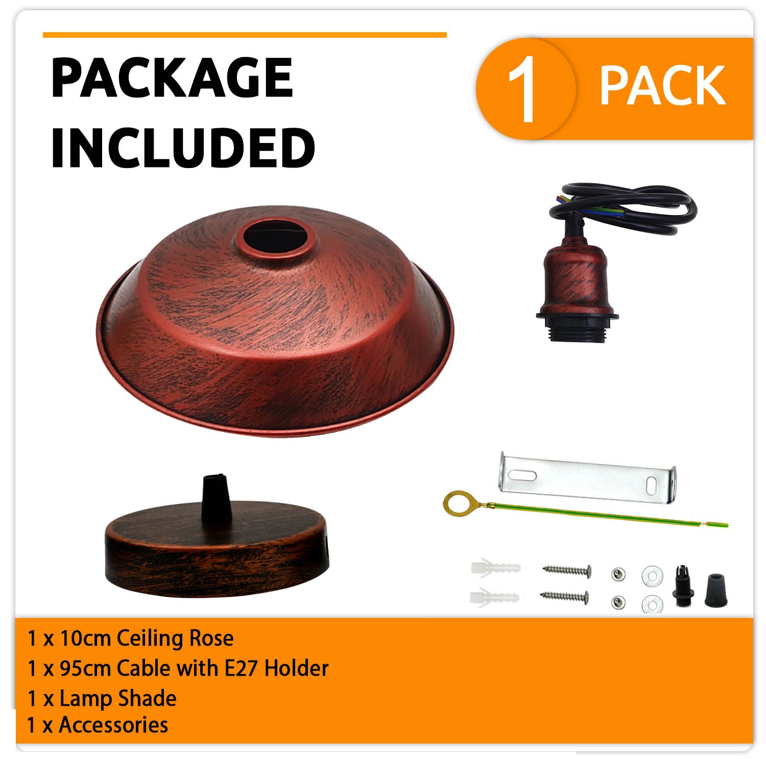 - 1 x Metal barrel cage - 1 x 95cm Adjustable pendant holder with cable (The light bulbs are optional) - 1 x Ceiling rose and all the necessary fittings |