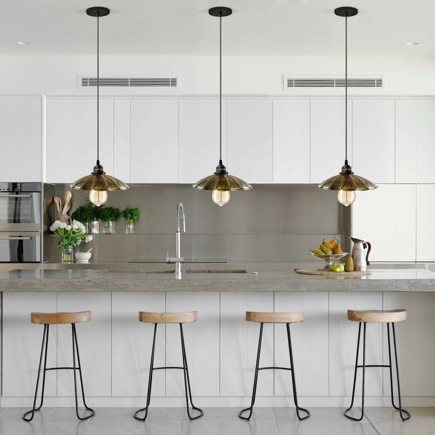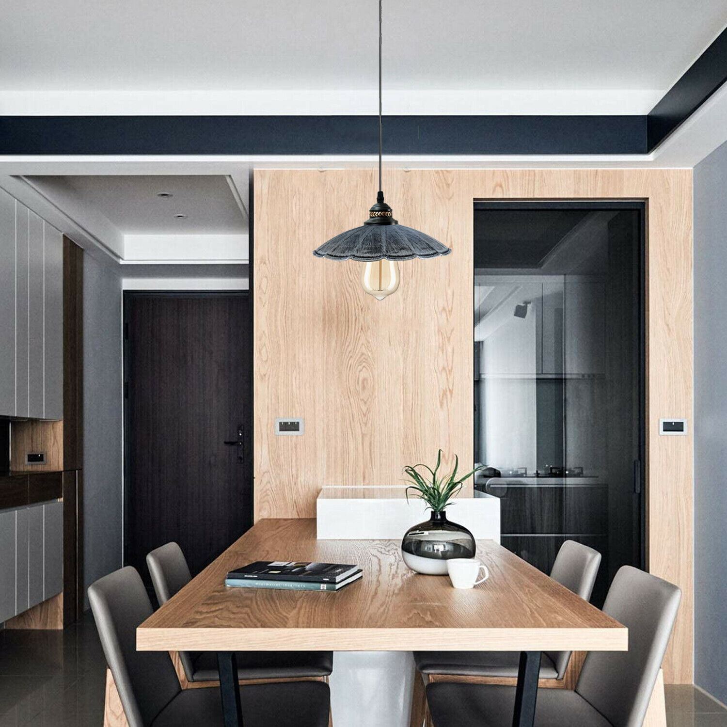 - A complete set including pendant, metal shade, ceiling canopy, and installation hardware.