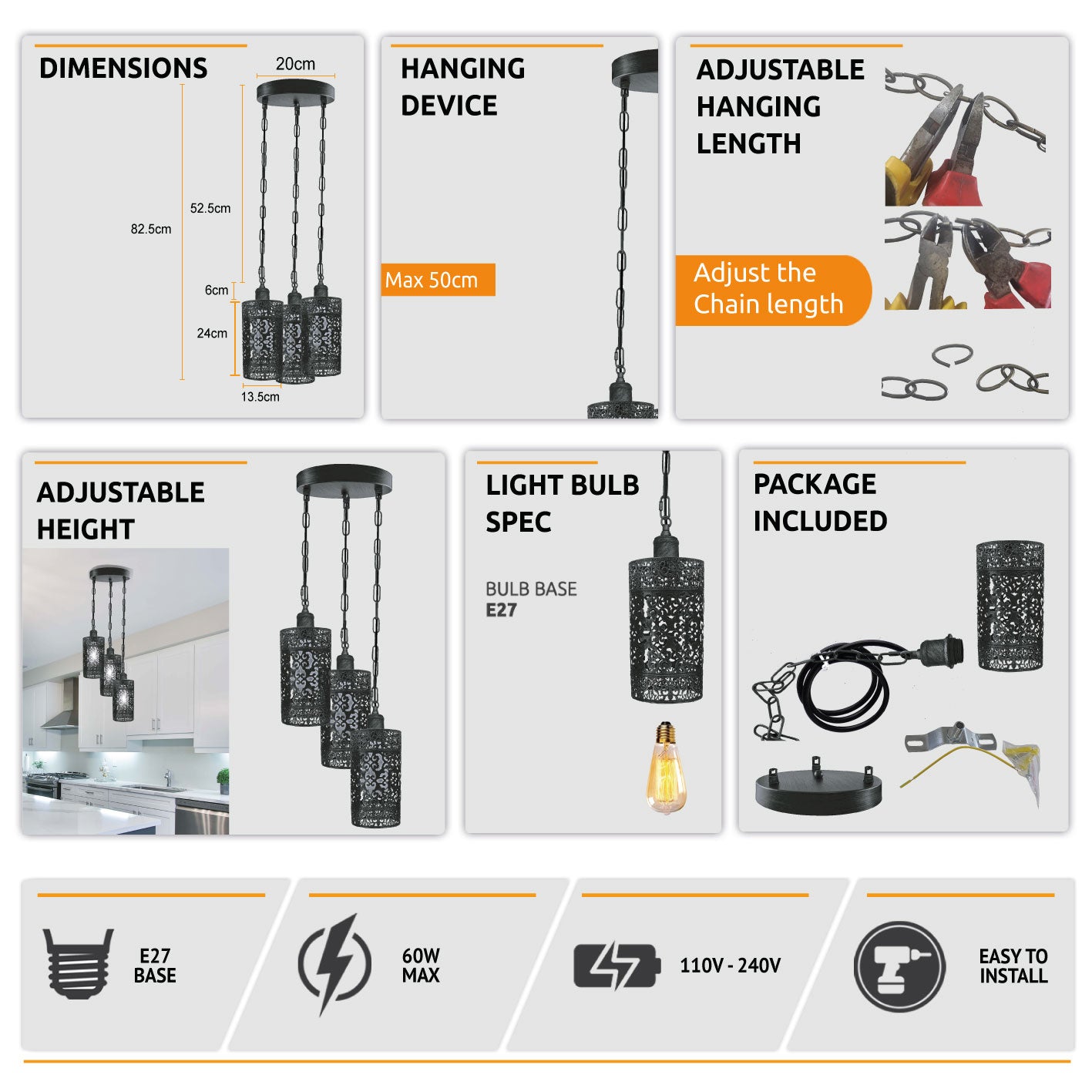 | Bulb Requirements | Requires E27 max 60W |