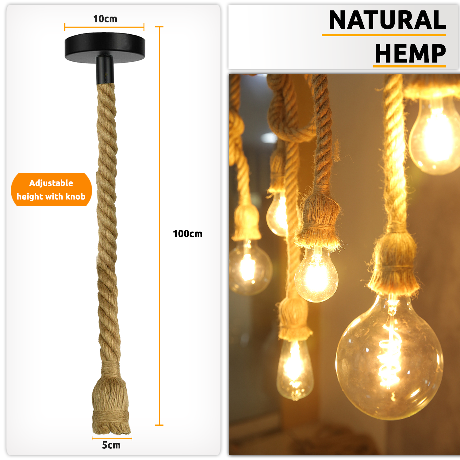 1 x Pendant Lamp Base with Mounting Parts 1 x Light holder with 1m hemp cable (bulb is optional)ncluded) |