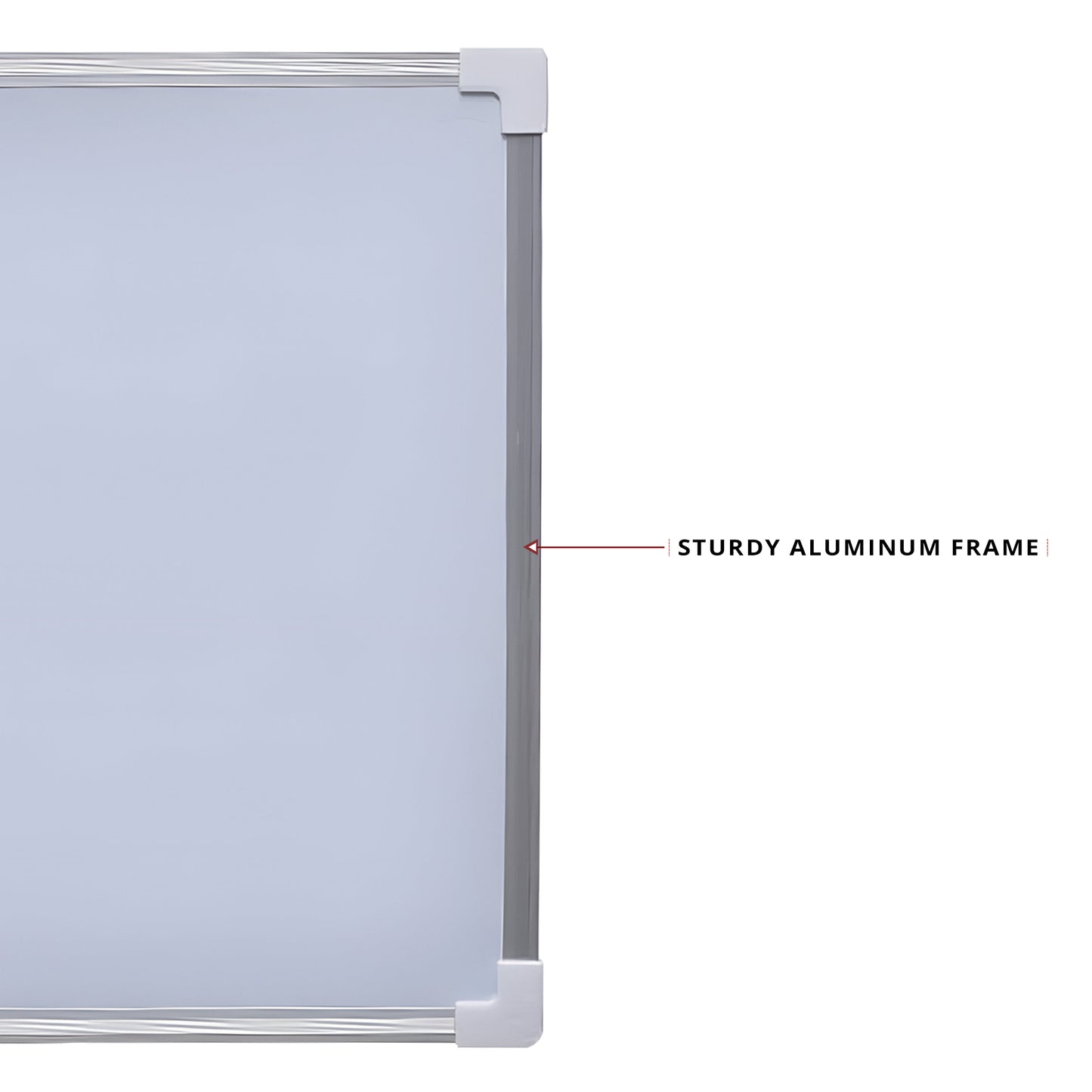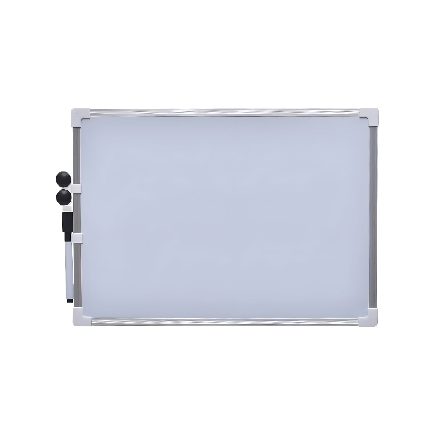 - Drywipe Whiteboard with a Pen Tray light weight aluminium frame.