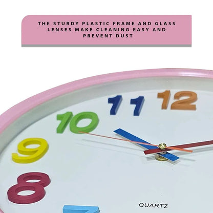 This round frame clock with colourful numbers makes it very beautiful and brings the feeling of youth. Made of Plastic material that is durable has no rust, and has long-lasting performance.
