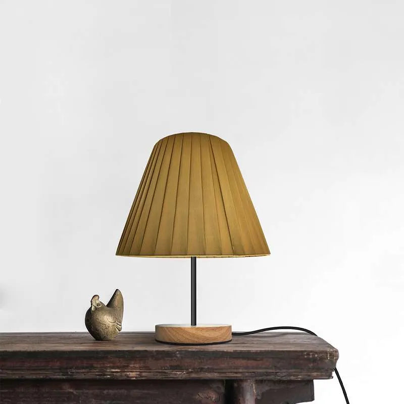 - The shade is a fabric frame that wraps around the inner structure into the wood stand allowing lighting setup with a moderate to ON/OFF switch.