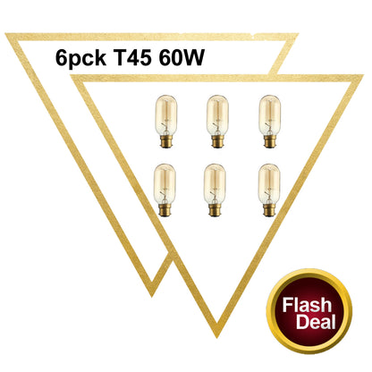 - 6 x T45 B22 60W Incandescent Bulbs Only.