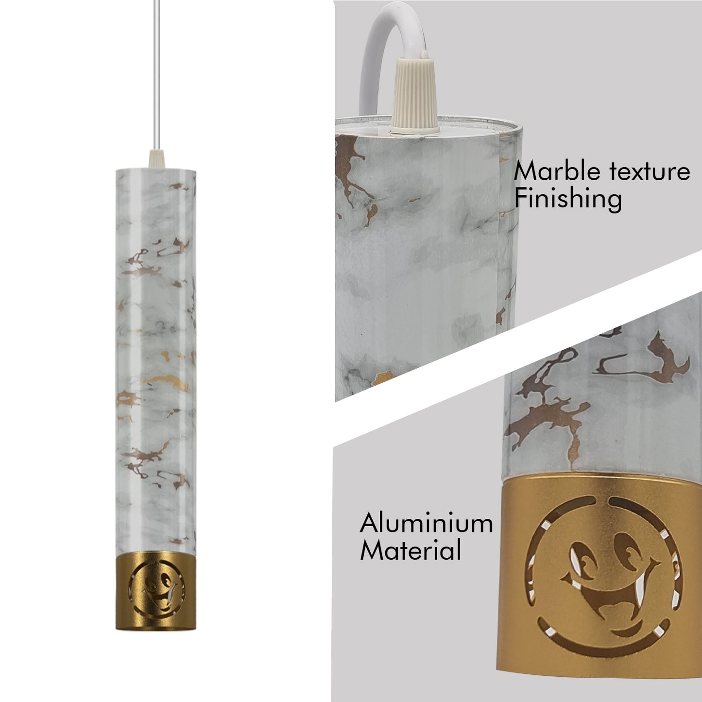 - Made of high-quality aluminum with a marble texture finish.