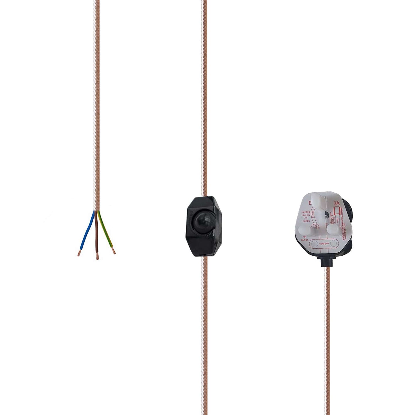 - 2m power cable with 3 pin plug designed for light set pendant fixtures.