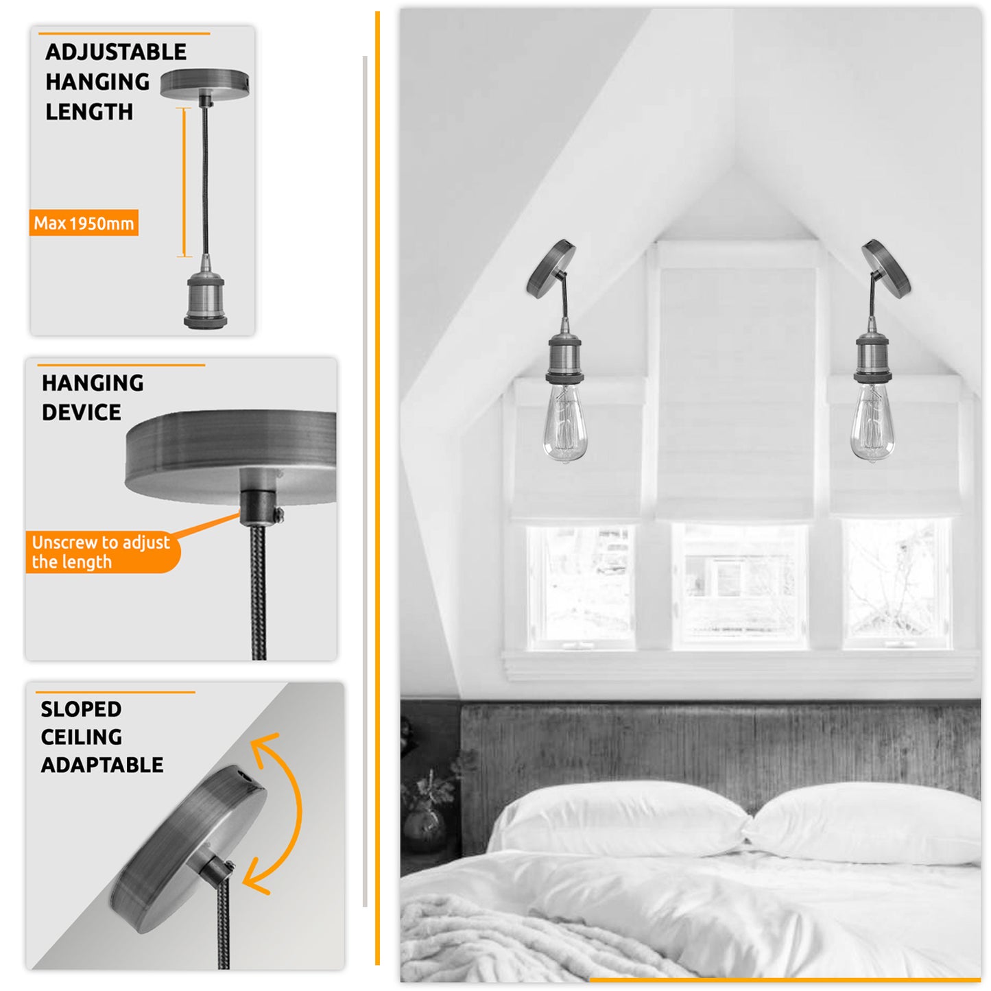 - Safety & Guarantee: We have received CE certification. Additionally, the pendant light cables are of the highest quality and safety. It is designed with the 3 core wire in other words, it is fully earthed. The usual reason behind this design is safety.