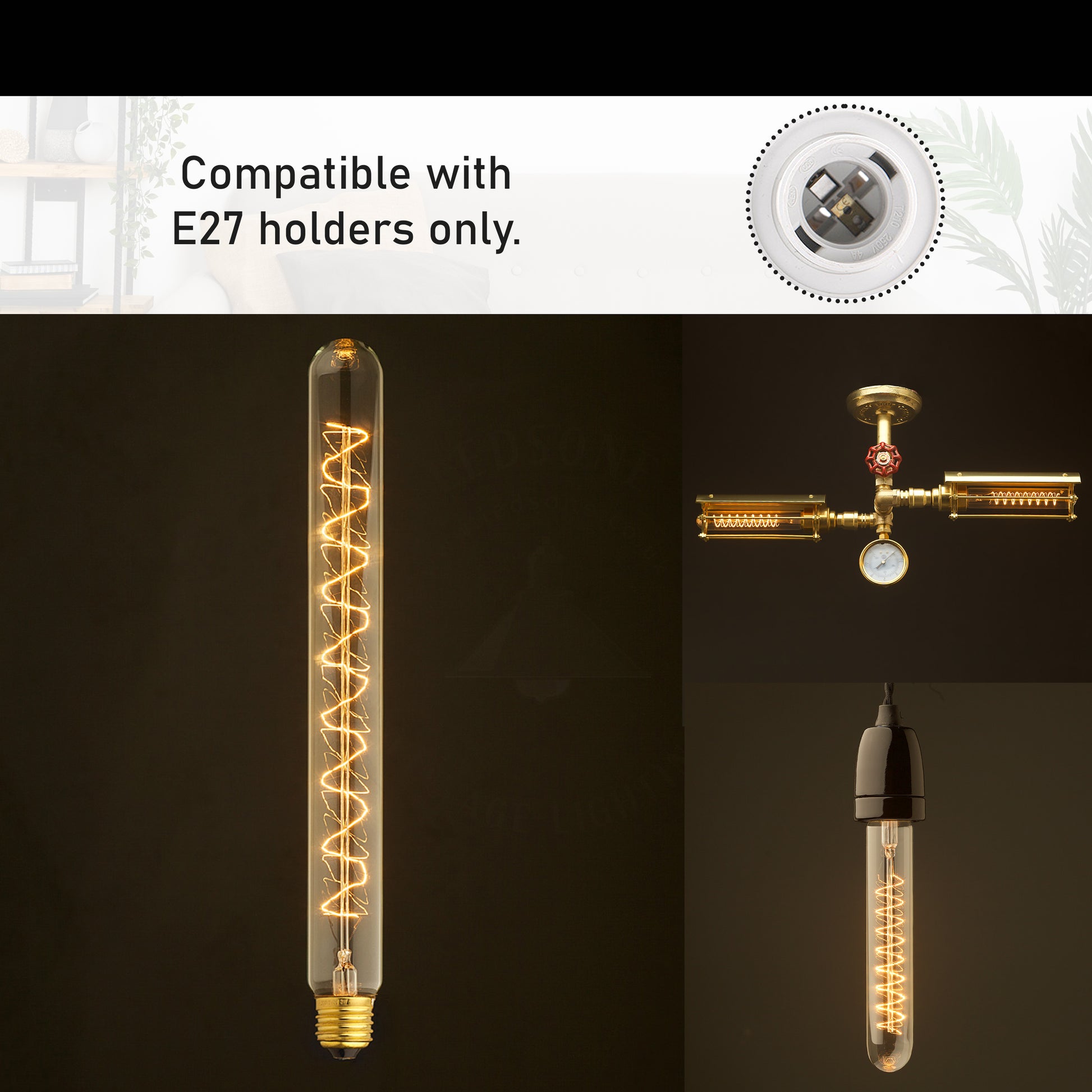 - E27 Marconi Style Incandescent Light Bulb, Vintage Edison Reproduction with Amber Glass.
