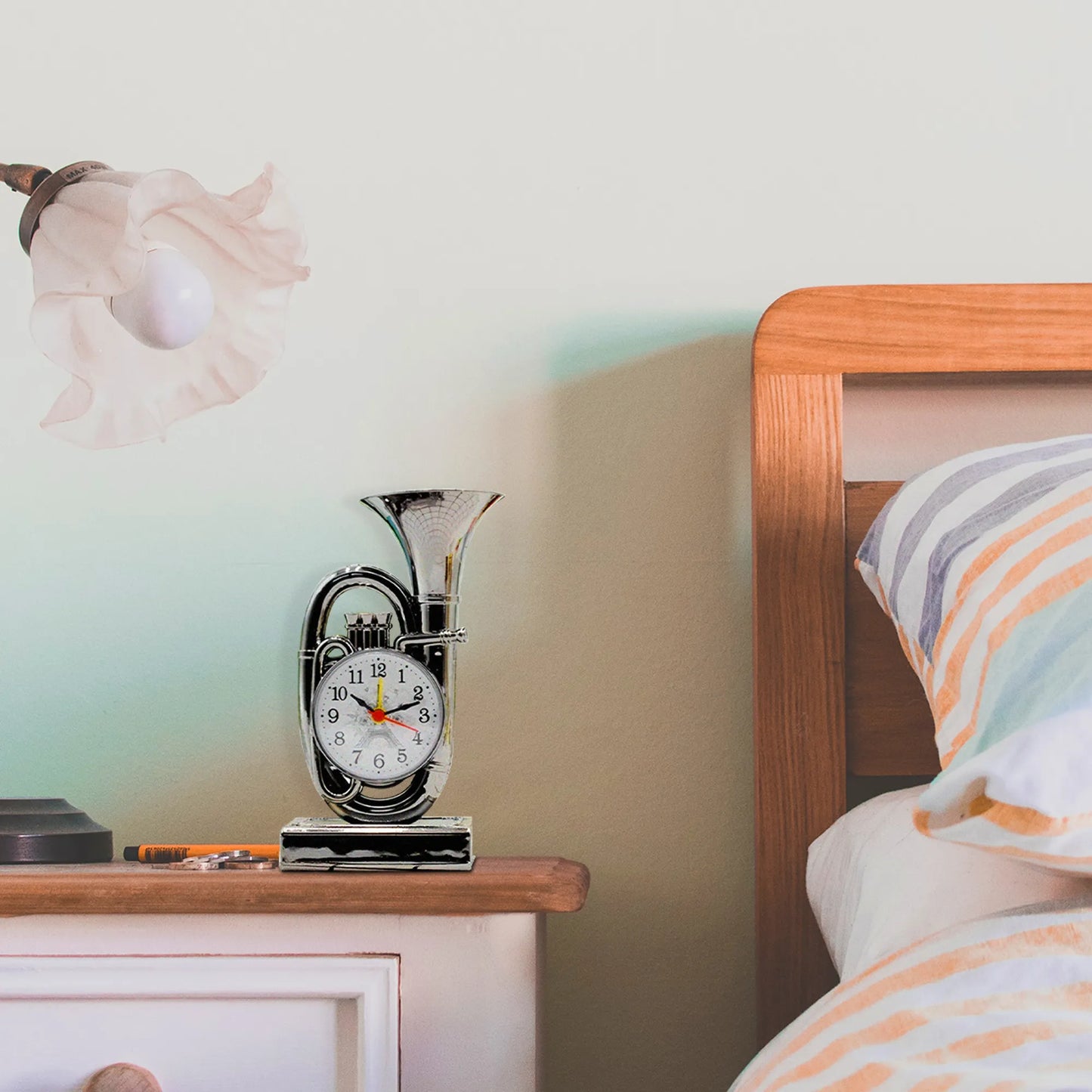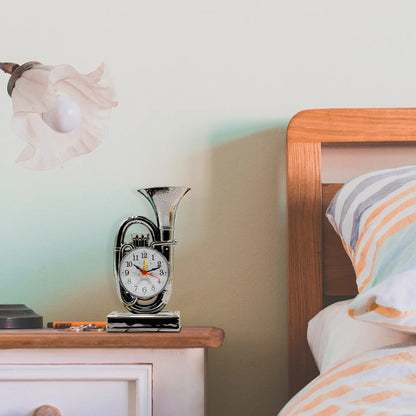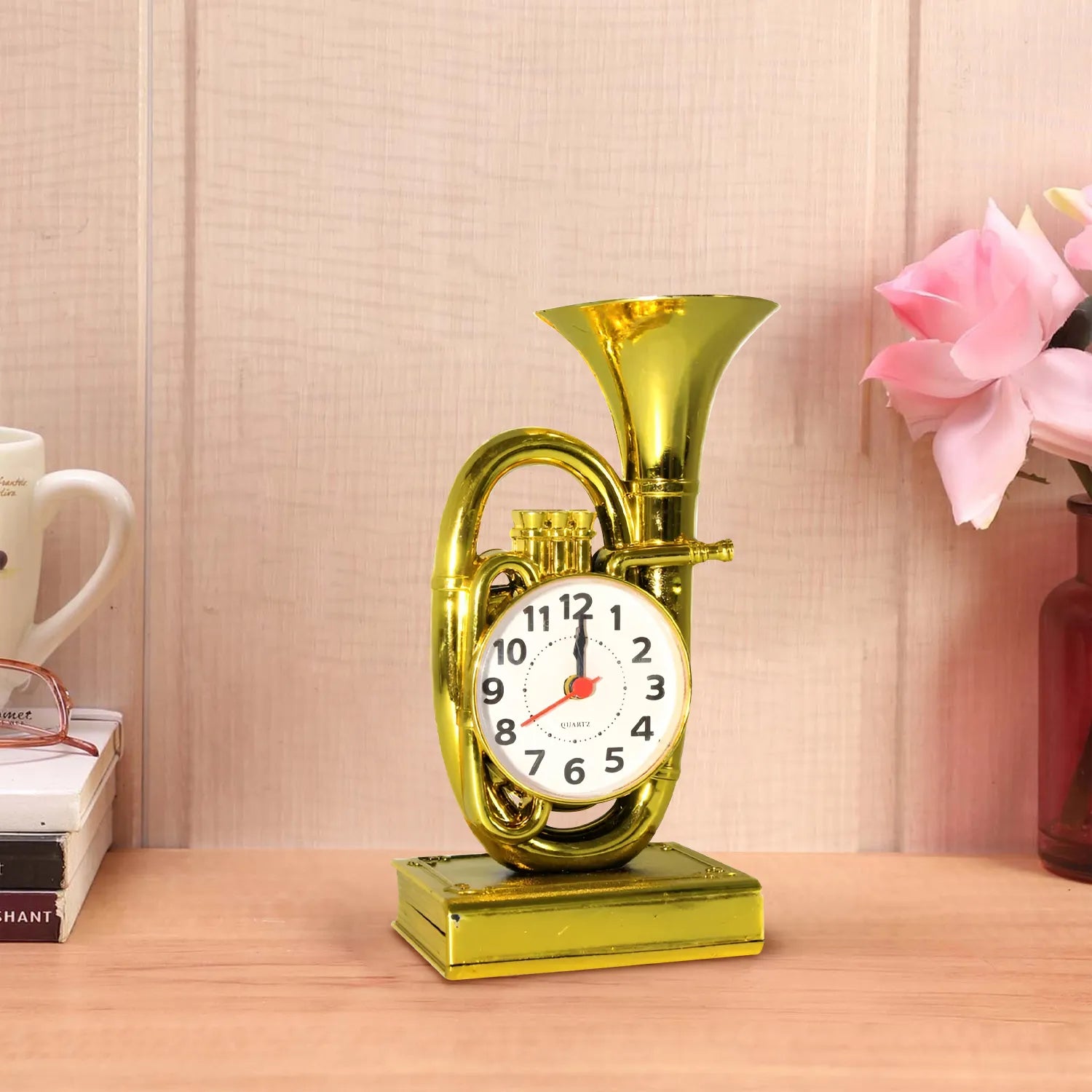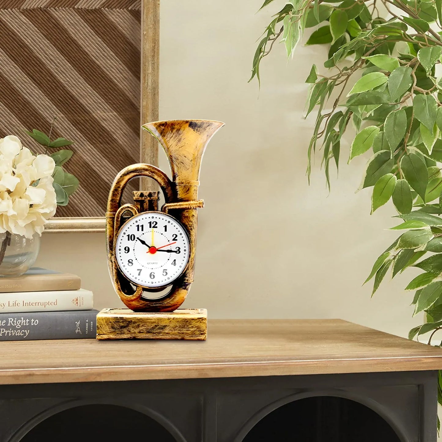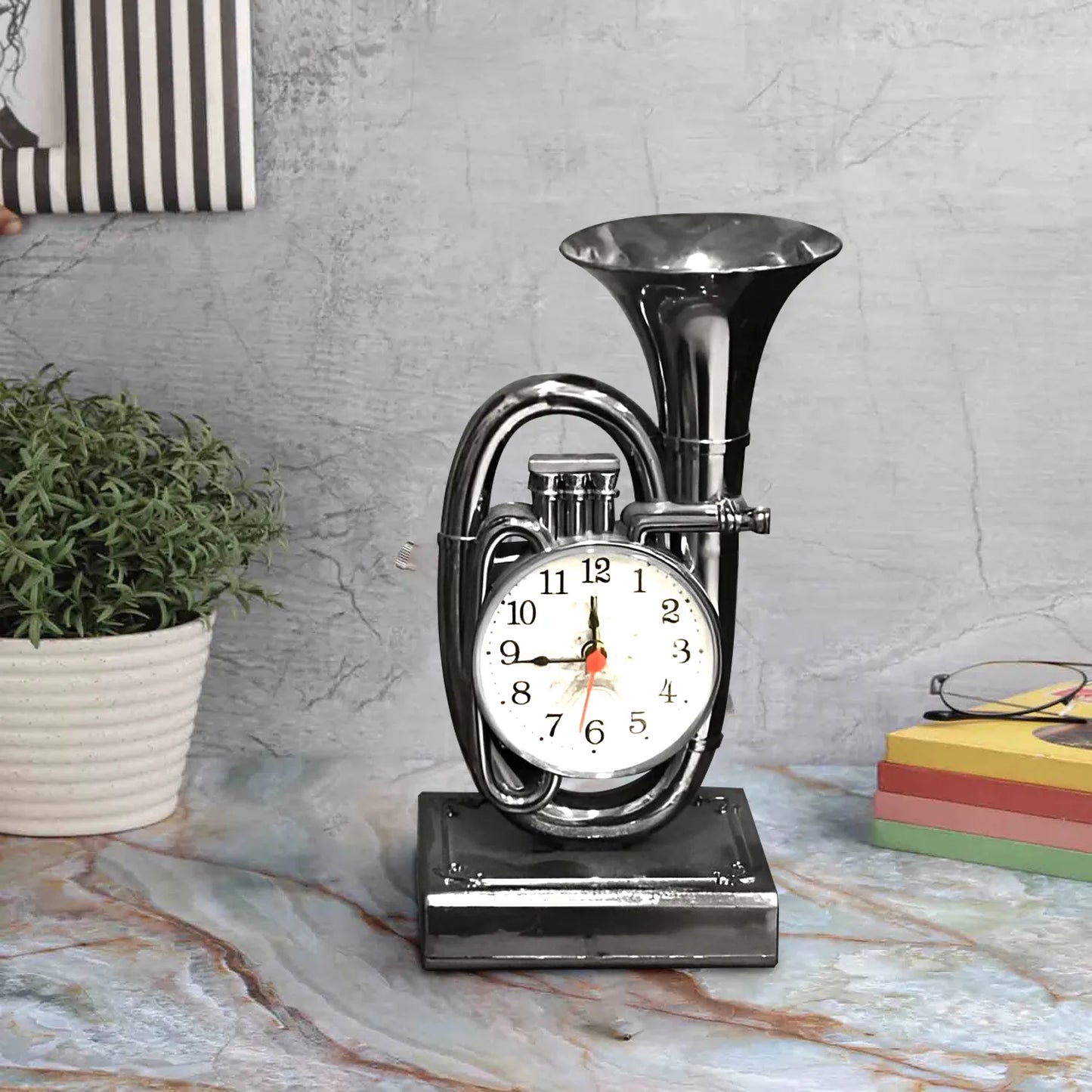 The clock may have a trumpet shape inspired by the musical instrument which makes it a great desktop decoration