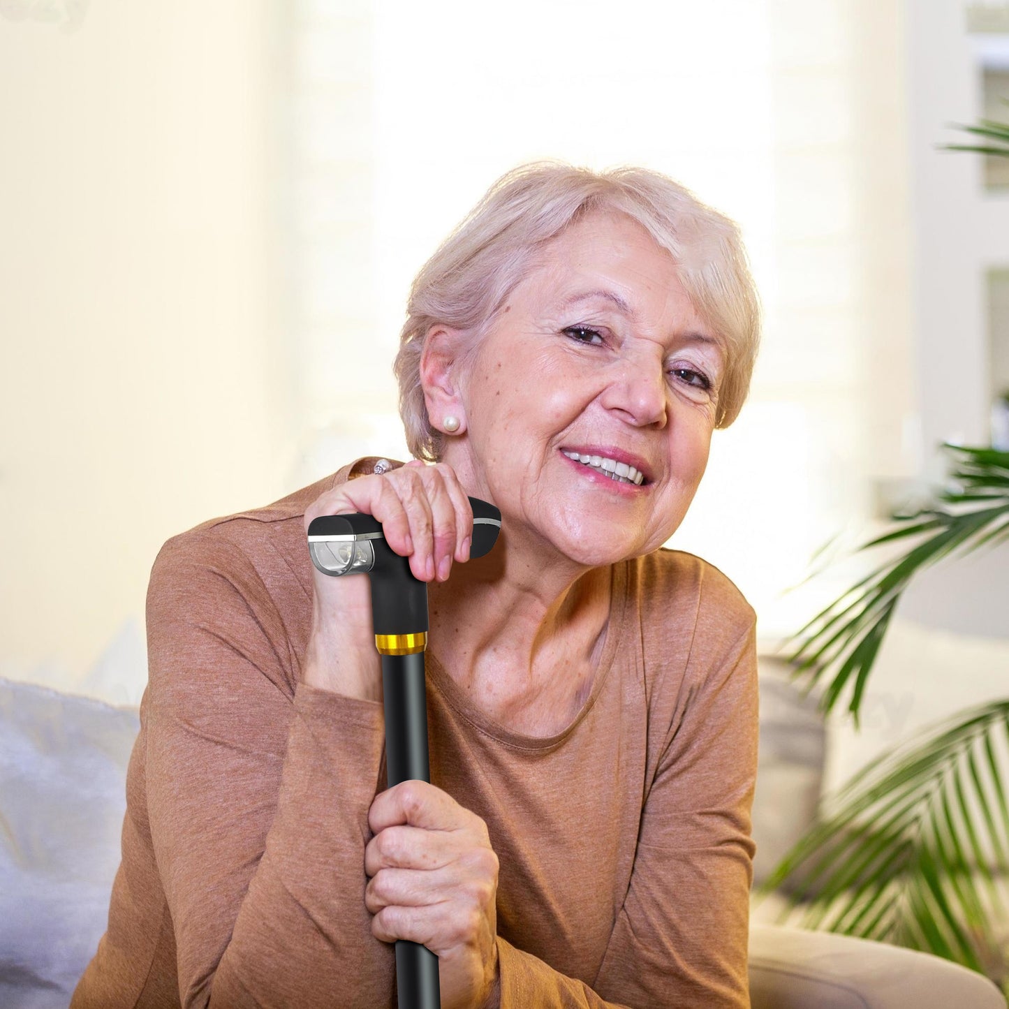 - The Walking Stick is equipped with a 360° degree rotatable base, useful for individuals who need extra support for their legs