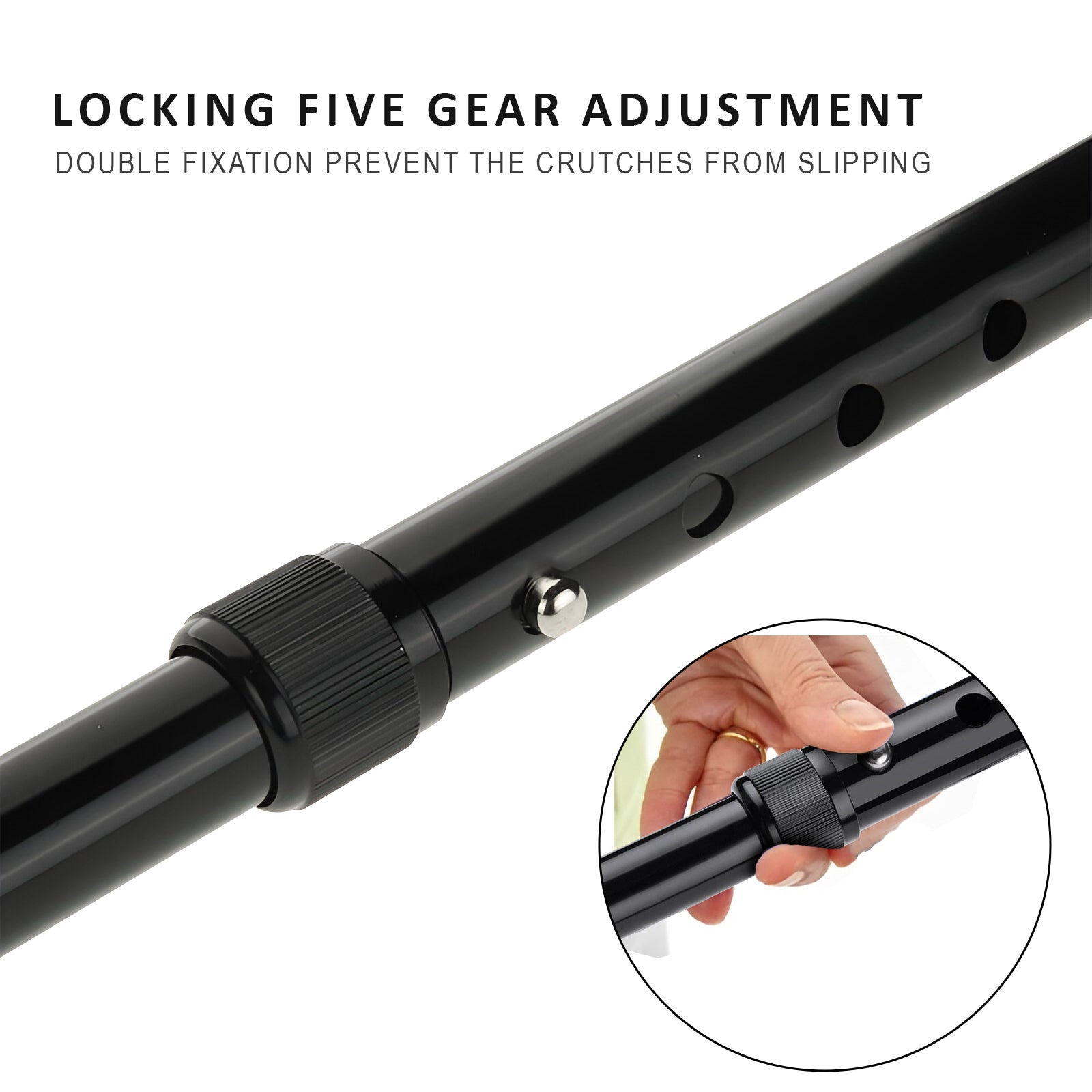 - With the simple push of a button on top of the adjustable walking cane, you can easily adjust the cane to 5 convenient heights