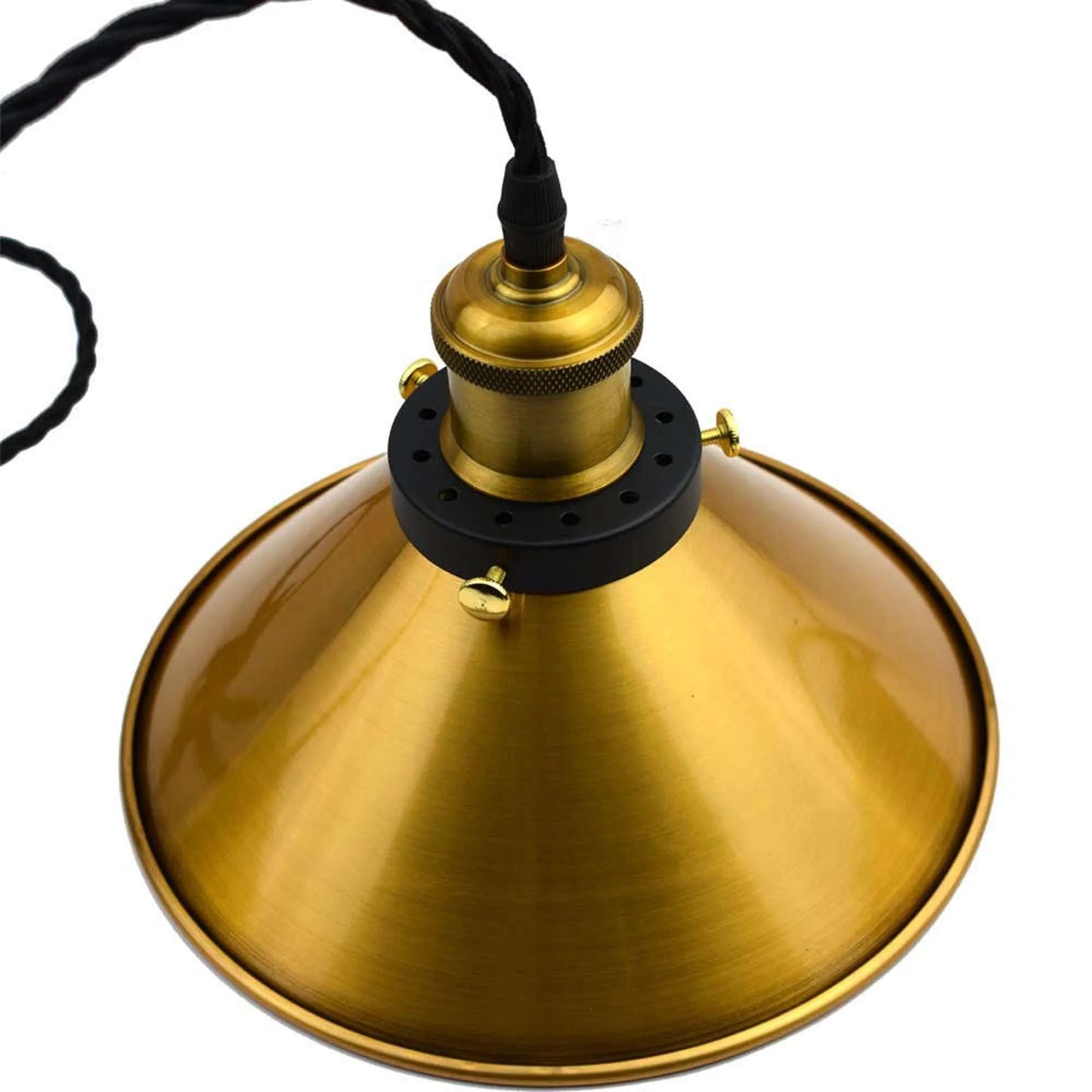 - Single Head Metal Cone lampshade pendant light is a uniquely designed Antique retro style Simplicity structure and Base combined With Twisted fabric covered cable.