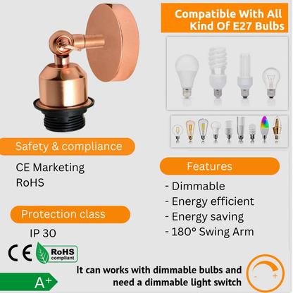 - These fixtures have a standard E27 base, which means they can accommodate most types of bulbs with an E27 base.