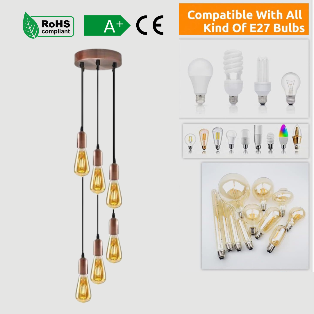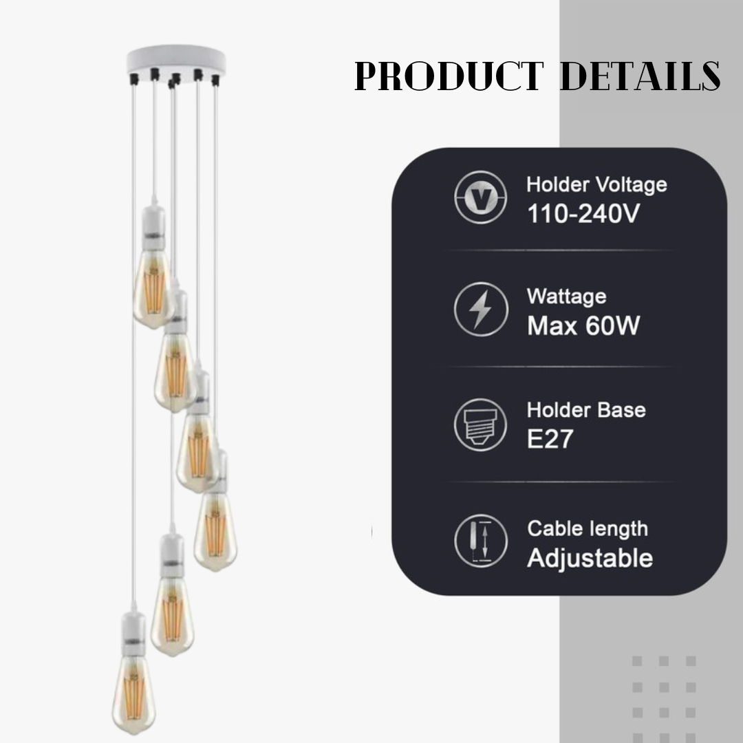 | Package Includes | 1 x Metal Ceiling Rose with Accessories 6 x E27 Holder Pendant with 95cm Cable Bulbs are Optional |