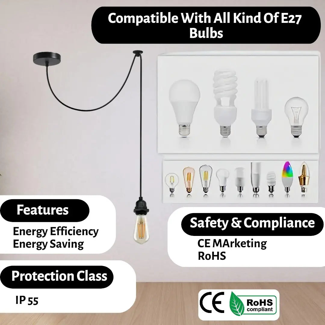 - A set using an E27 socket allows easy installation of a wide range of light bulbs.