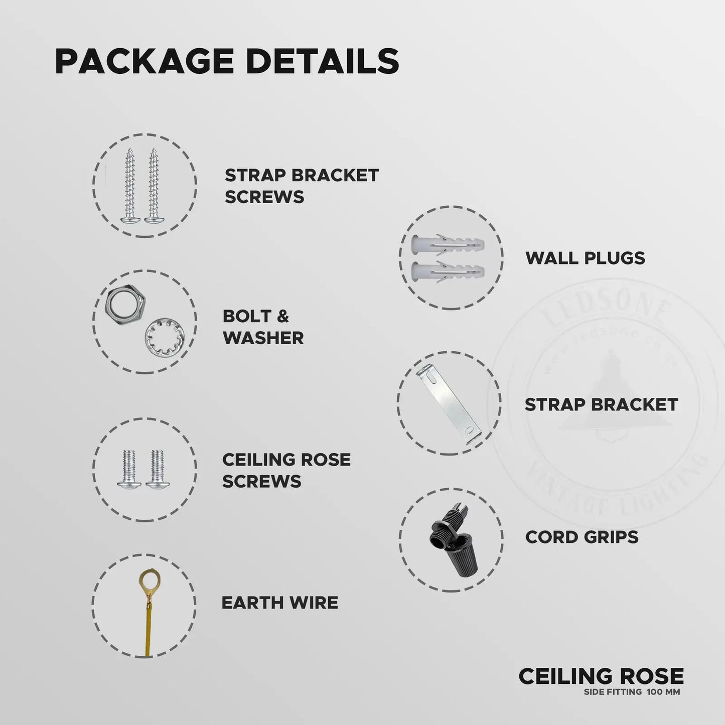 | Package includes | 1x Ceiling Rose Only |