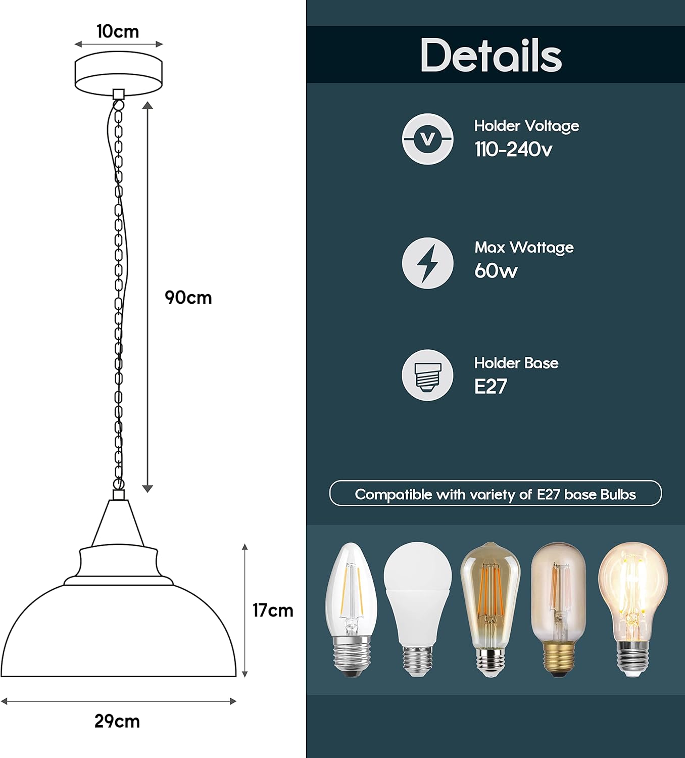 - Dimension: Ceiling rose 10 cm x 2.5 cm Shade 29 cm x 17 cm