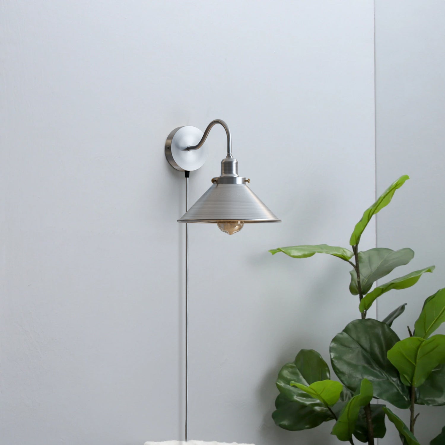 - 1 x Plug-in Wall Light Set (includes light shade, E27 holder with light arm, ceiling rose with UK plug, and fitting accessories)