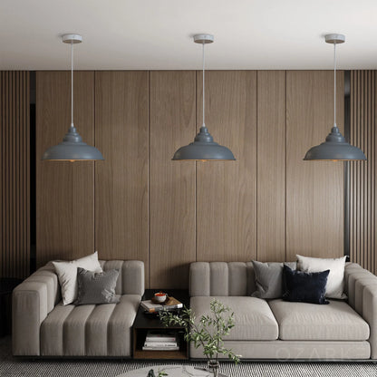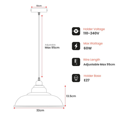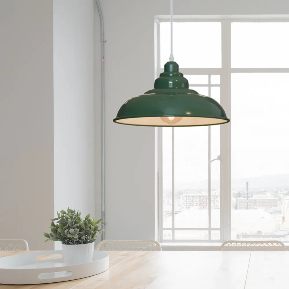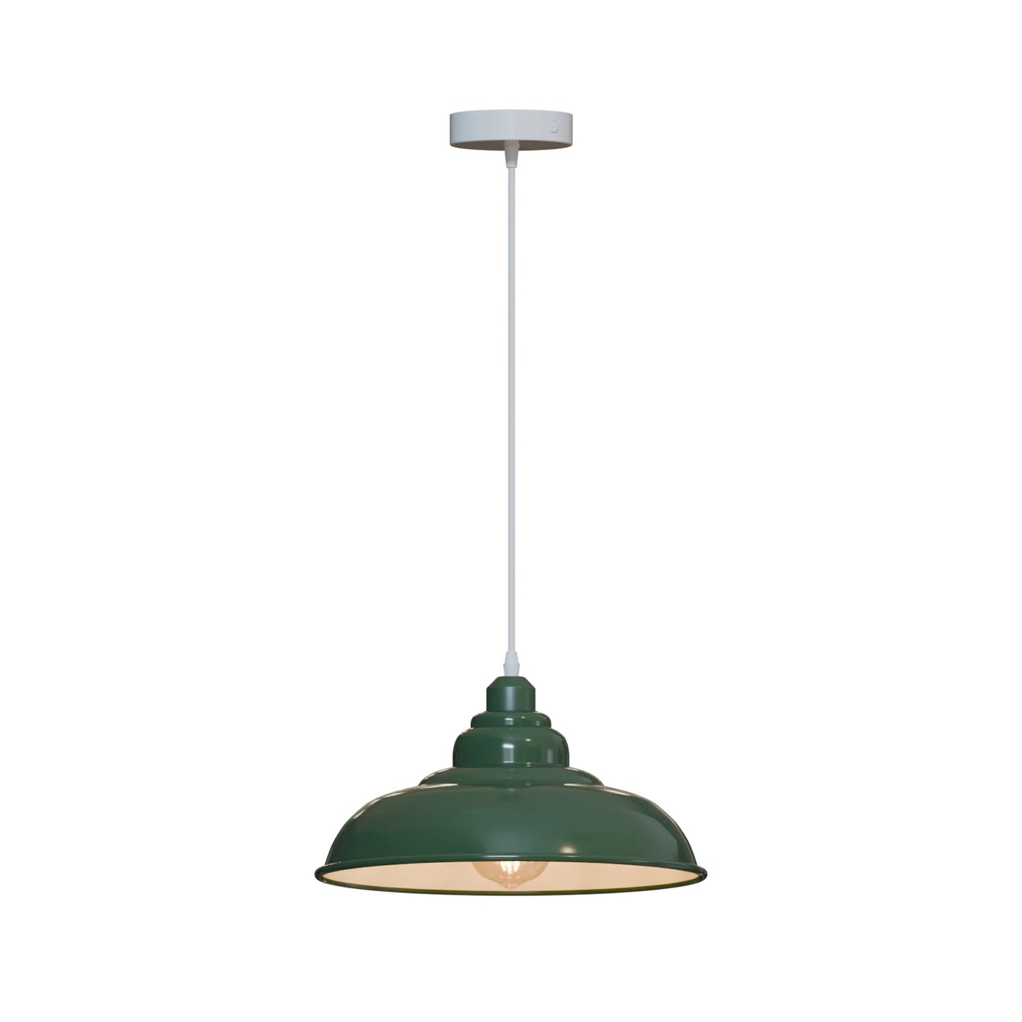 - A complete set including pendant, metal shade, ceiling canopy, and installation hardware.