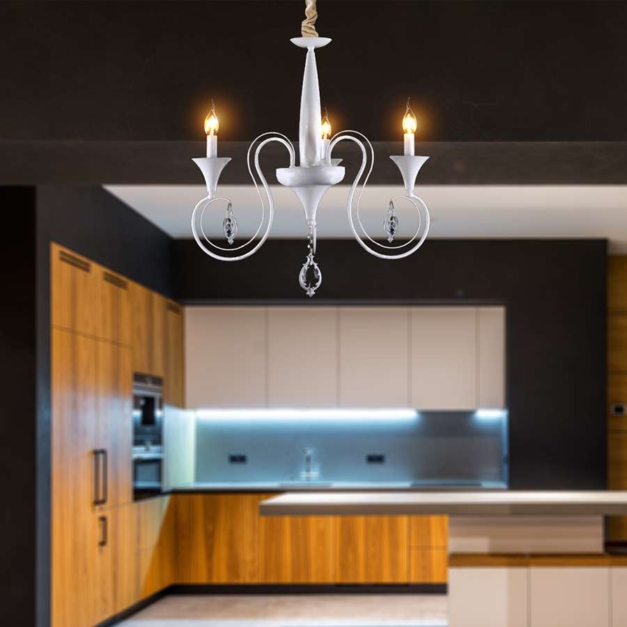 - Traditional flemish 3-way ceiling light chandelier in a shabby chic distressed white effect finish.