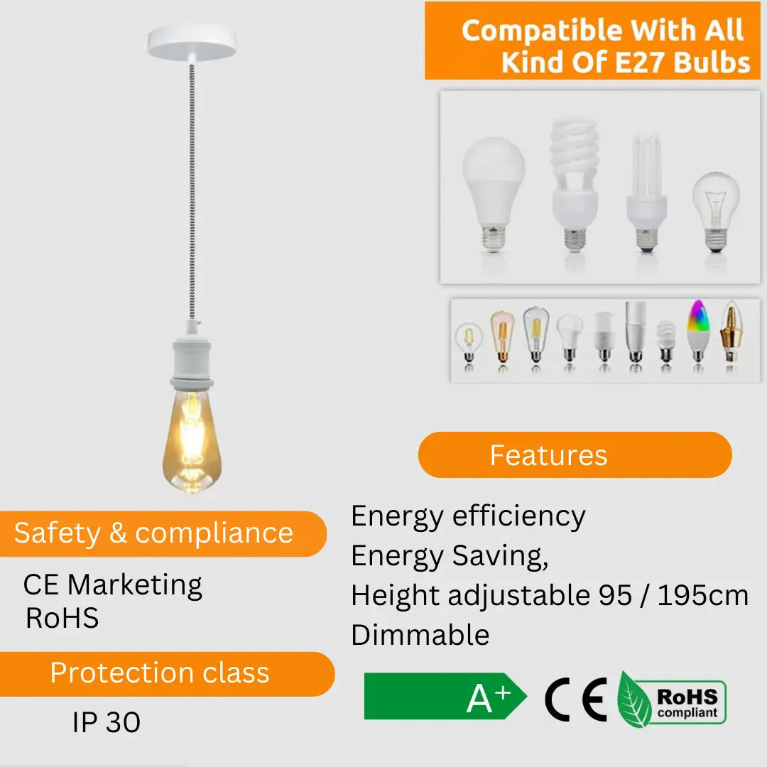 - Bulb Requirements: Requires E27 max 60W
