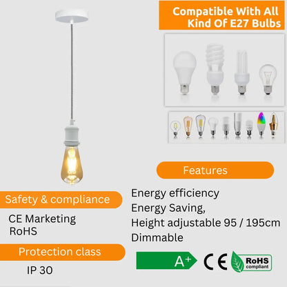 - Safety and Guarantee: We have received CE certification. Additionally, the pendant light cables are of the highest quality and safety. It is designed with the 3 core wire in other words, it is fully earthed. The usual reason behind this design is safety.