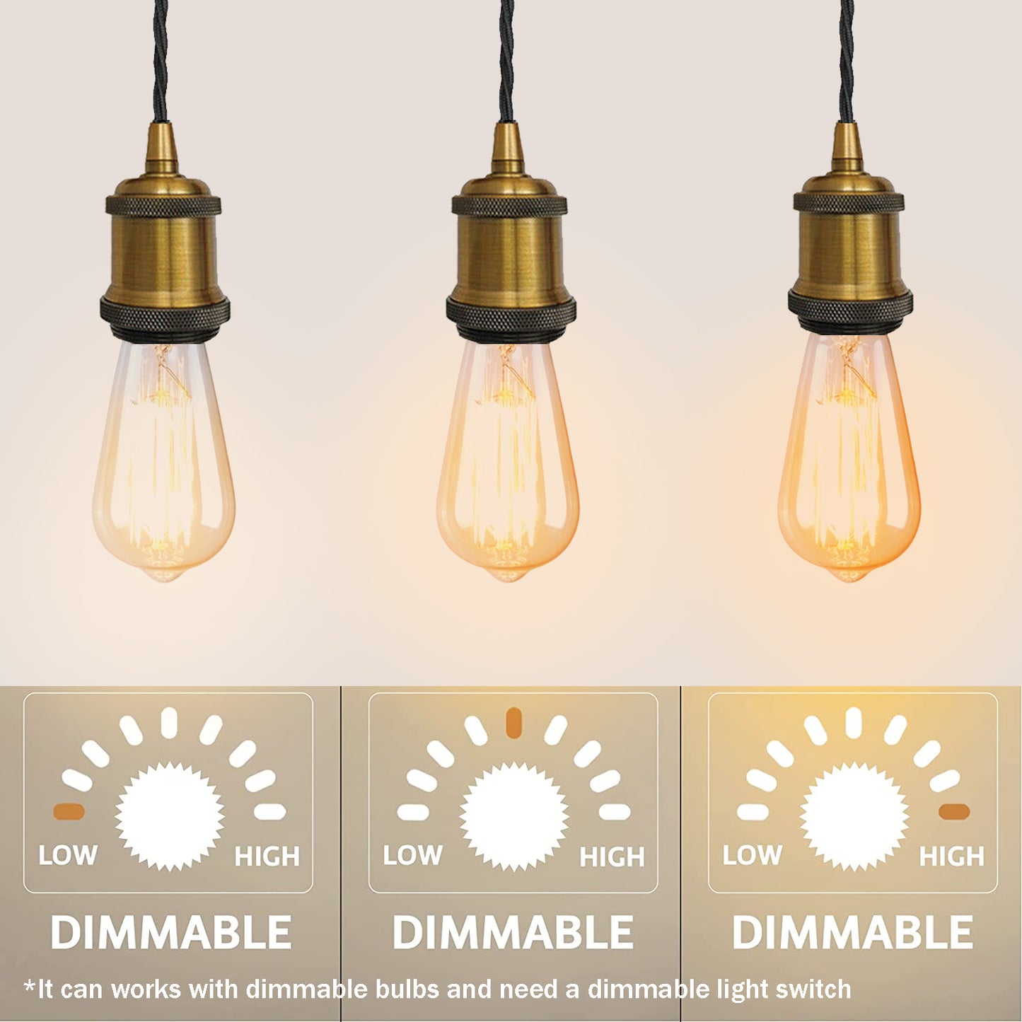 - When used with a matching dimmer switch and dimmable bulb, it can be dimmable.