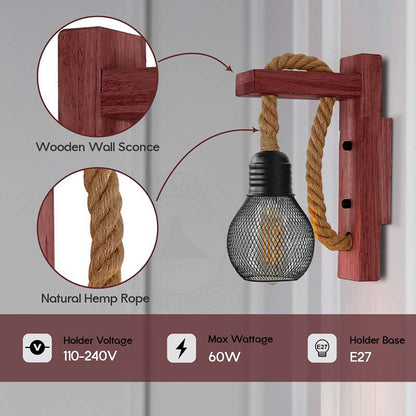 - Enhance your decor with our Rustic Wooden Hemp Wall Lamp – a sustainable, eco-friendly lighting choice that exudes style.
