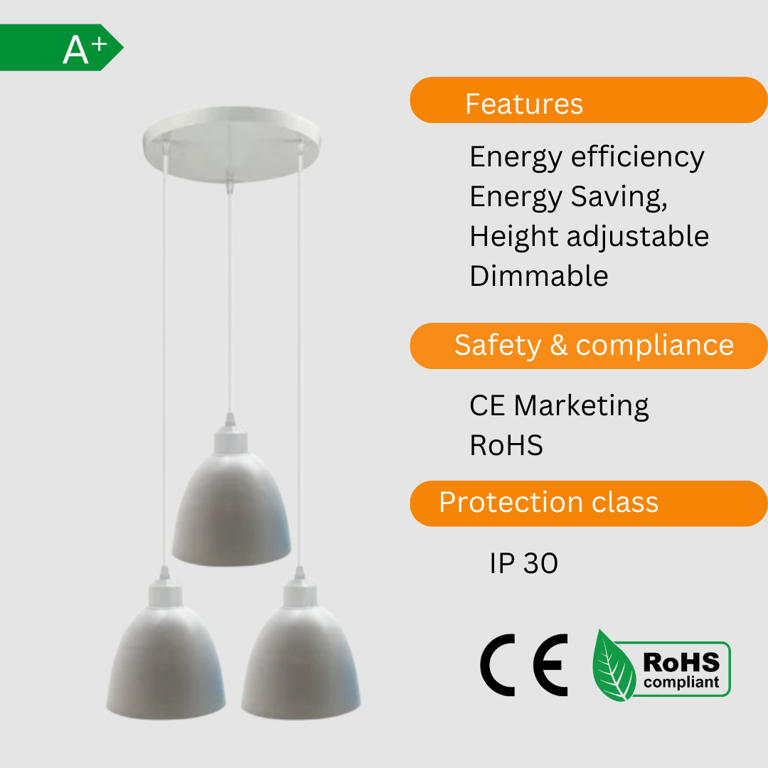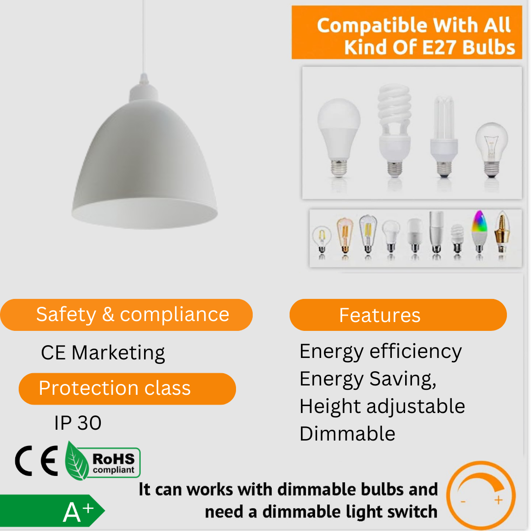 | Special features | -Height adjustable, -Dimmable (if used dimmable switch) -Energy efficient -Energy saving |