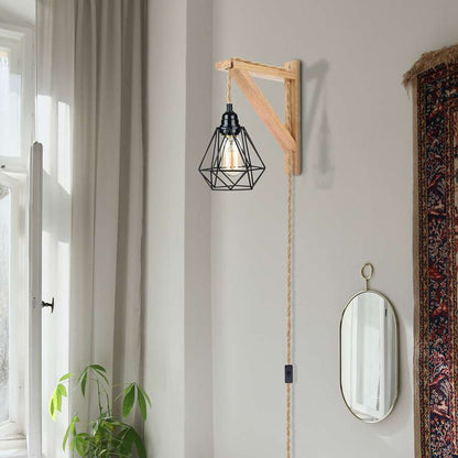 Retro Style Wood Hemp Rope Hanging Wall lamp! It’s the very best choice for you! Bring Gorgeous Diamond Cage design to your space!