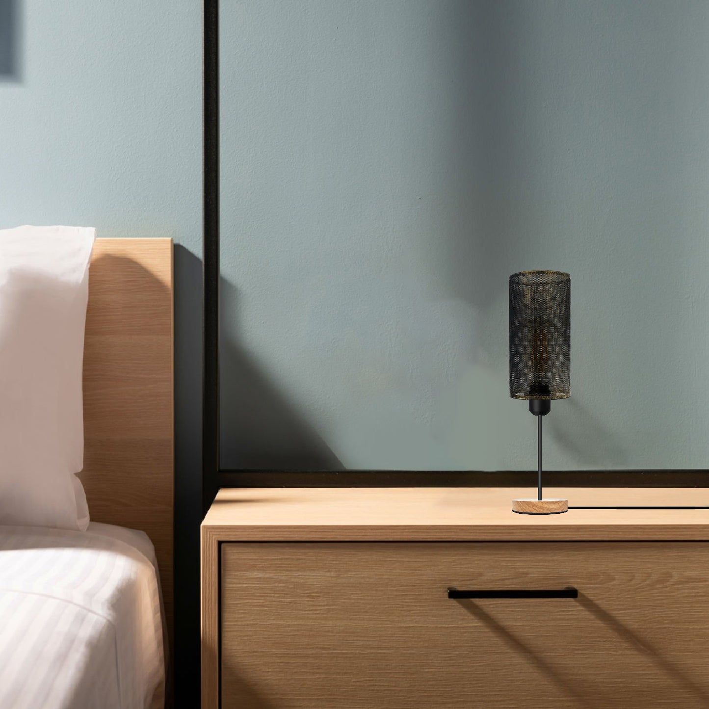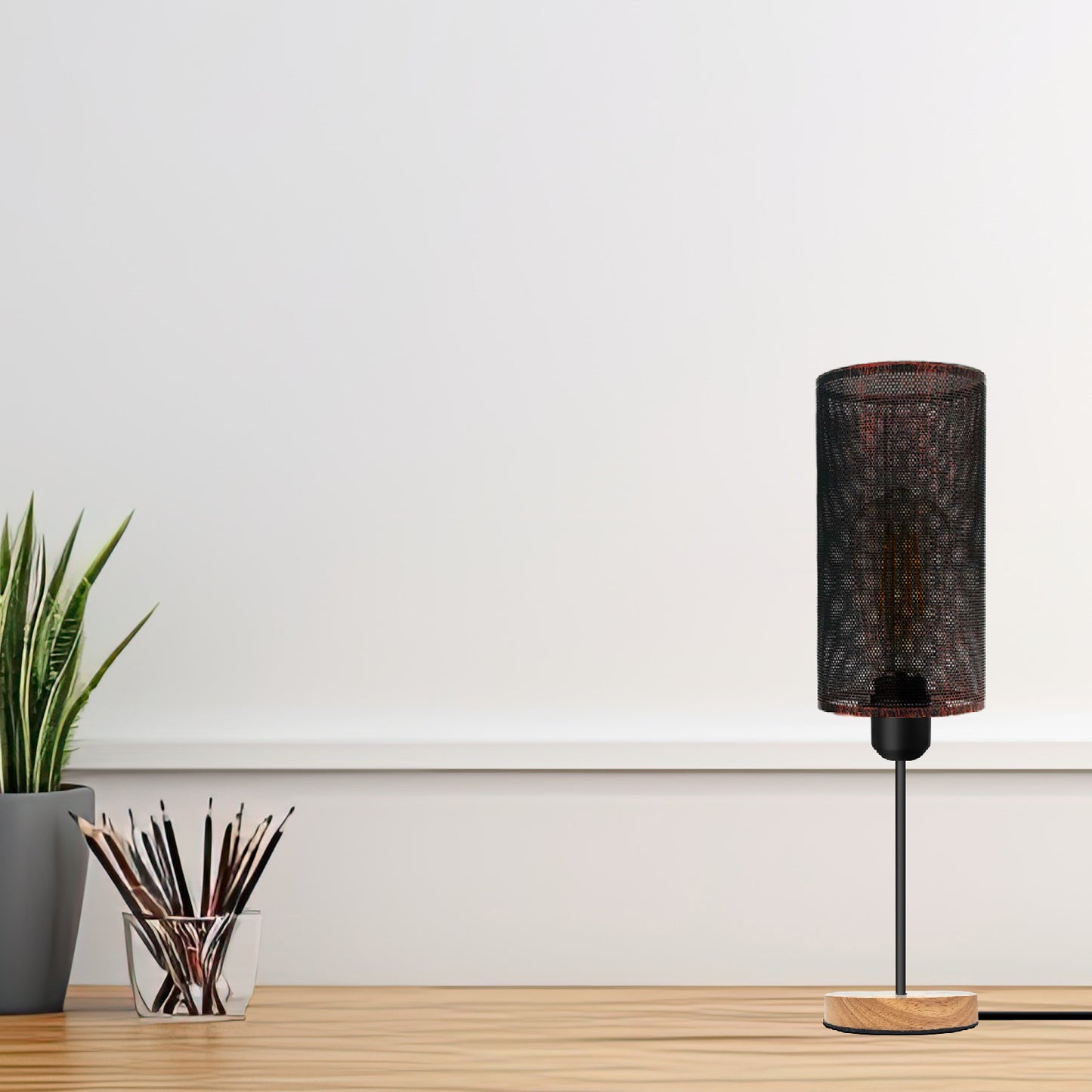 - The table lamp is designed with a barrel cage and natural wood stand the lighting fixture to add extra beauty to your home as well as perfect interior decoration